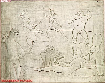 Silène dansant en compagnie. Cannes, 6 juillet 1933, encre et gouache, 34 X 45 cm Collection privée, Suisse